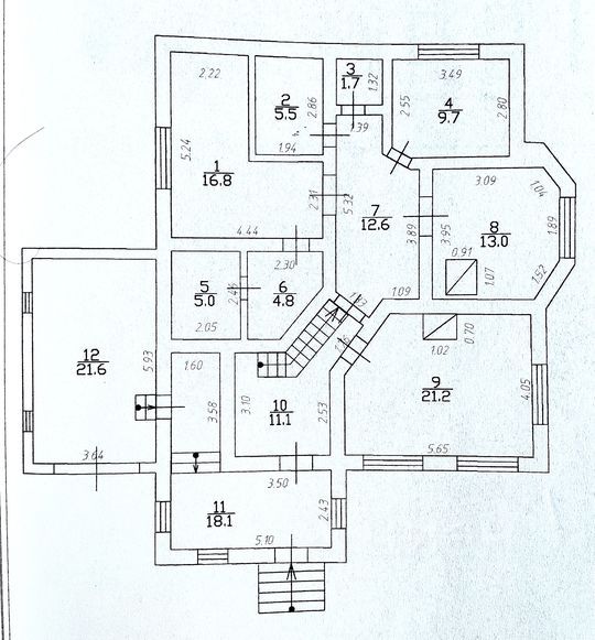 1 этаж: 3 комнаты, в т.ч. одна - с камином, большая кухня, раздельный санузел, баня, просторная прихожая и веранда, из котой можно попасть в большой высокий гараж.