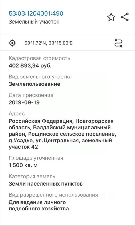 Два участка, общей площадью 30 соток, всего в 800 м от берега Валдайского озера в д. Усадье, и всего в 8 км от самого города Валдай.