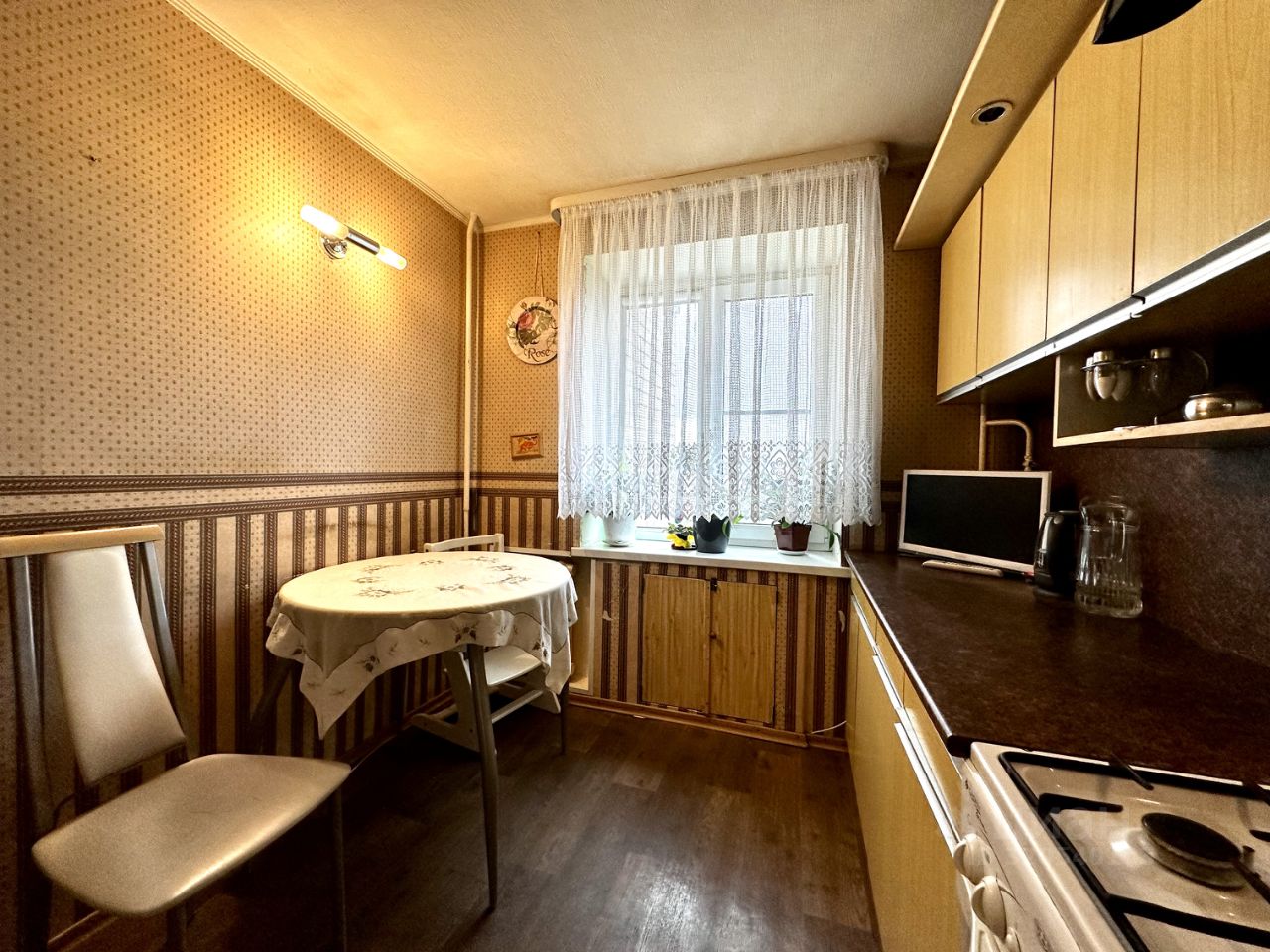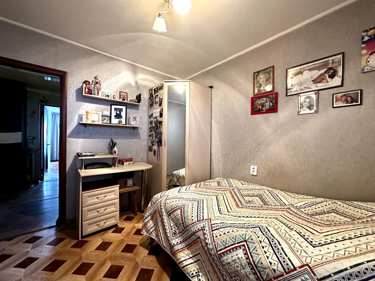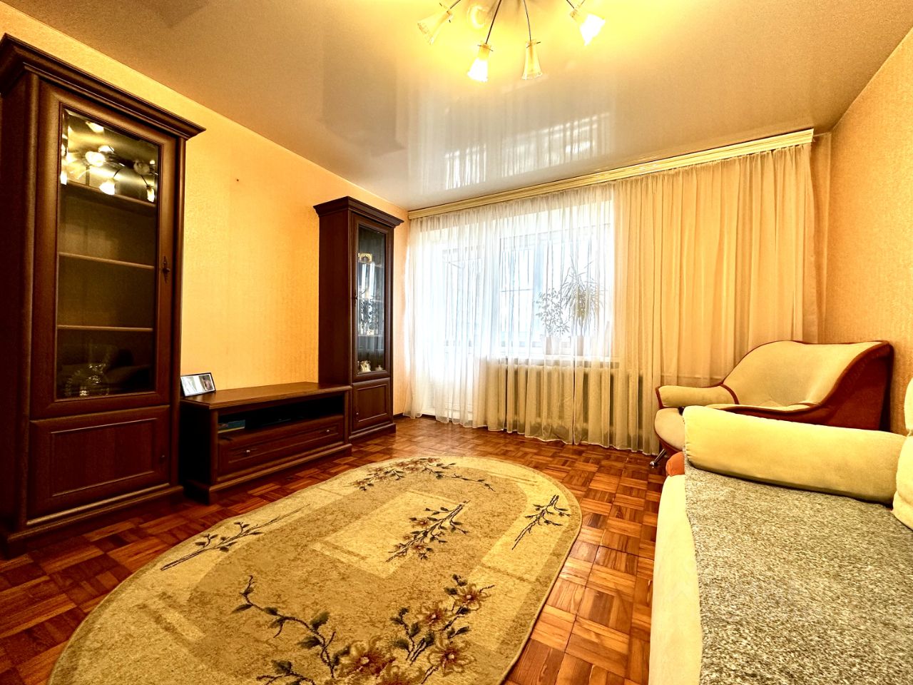 В квартире установлены стеклопакеты, заменена проводка, выровнены стены.