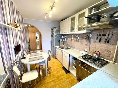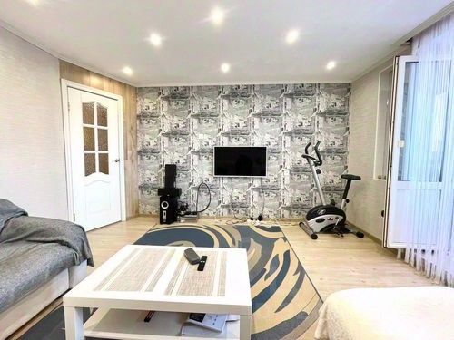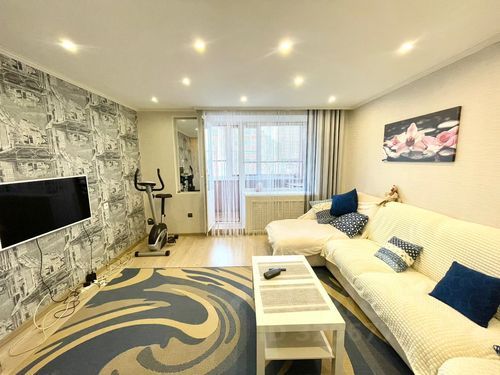 Квартира расположена на третьем этаже. Внутри красивые и уютные интерьеры. Потолки во всех помещениях подвесные, в спальне - натяжной. Из большой комнаты выход на лоджию. Лоджия застеклена, здесь установлены тёплые полы (электрические).