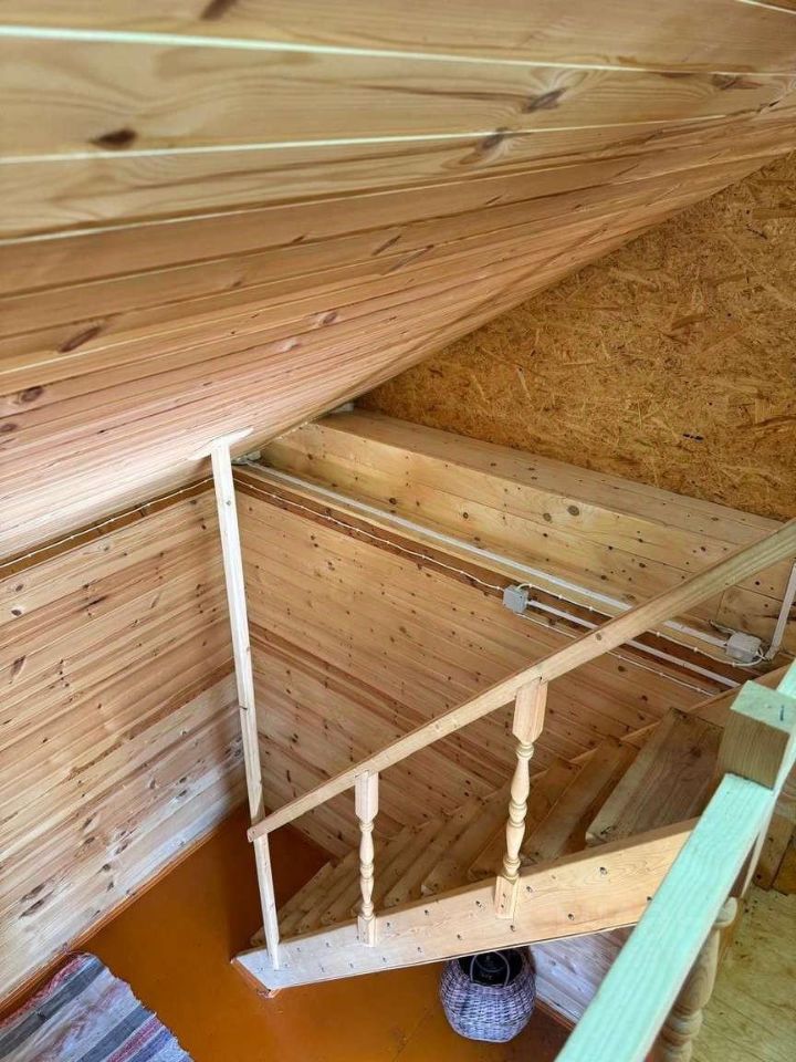 На втором этаже спальня и дополнительные зоны хранения.