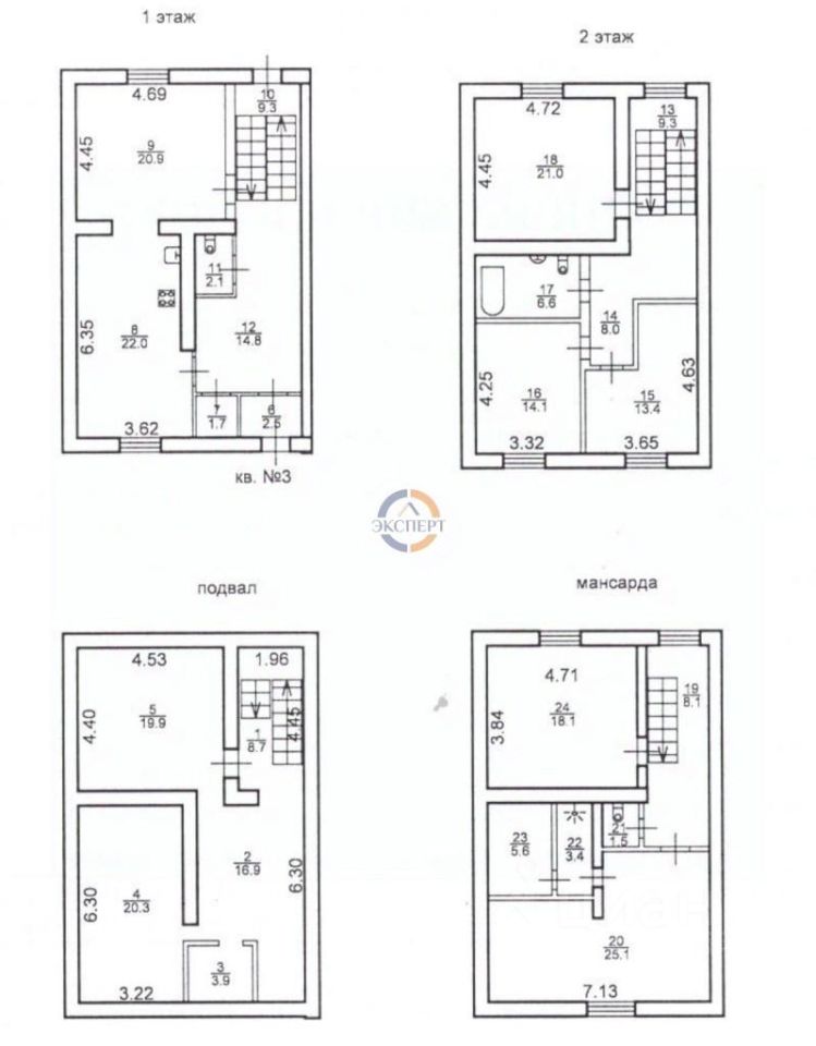 2 этаж - 3 комнаты ( 21+ 14.1+ 13.4 кв.м) и санузел с ванной,
