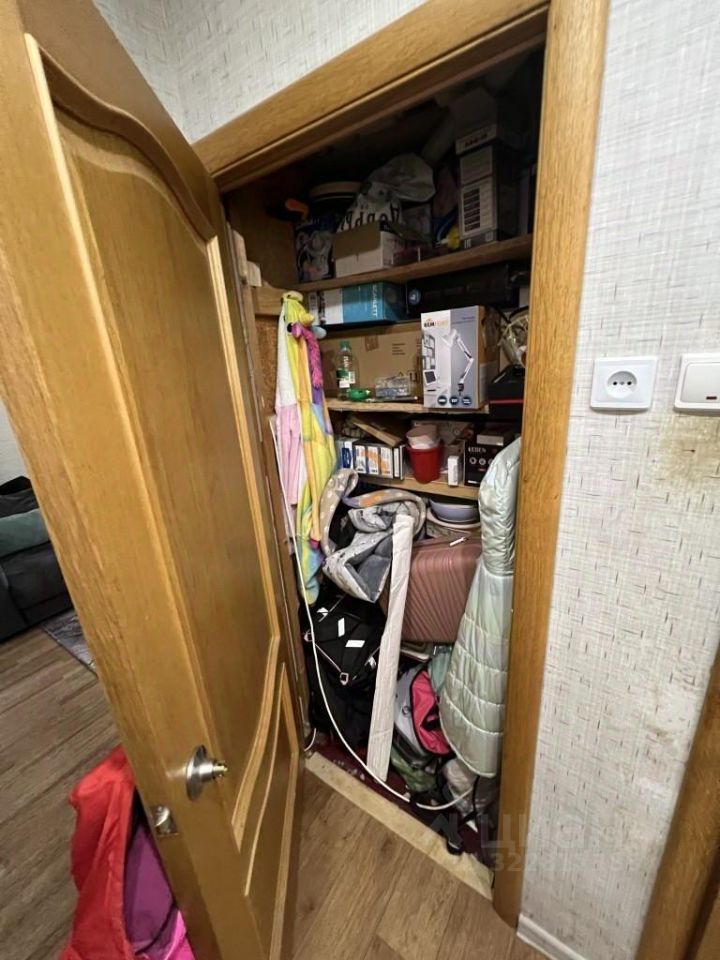 Комнаты смежные, санузел совмещенный. Есть балкон и отдельная кладовка для хранения. Высота потолков — 2,7 м. Окна выходят во двор. Выполнен косметический ремонт, можно заехать и жить. В квартире остается мебель: кухня, шкафы для хранения, спальные места. Также в наличии необходимая бытовая техника: холодильник, стиральная машина.