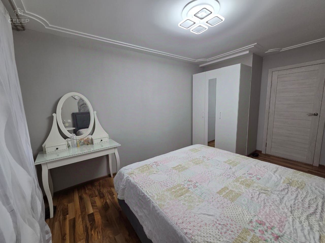 Санузел раздельный/в кафеле. Кухня объединена с гостиной, две спальни на разные стороны разделены просторной гардеробной.