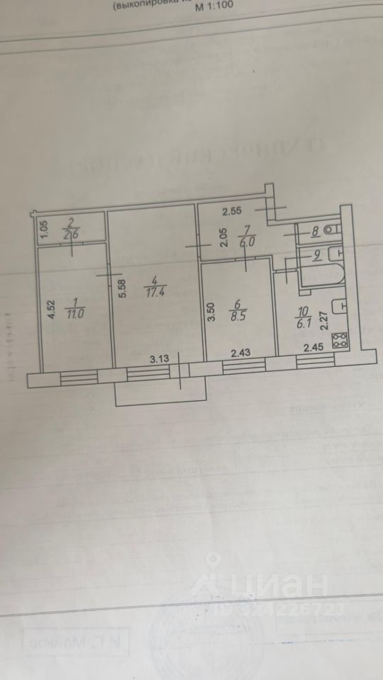 Трехкомнатная квартира общей площадью 54,8 кв.м, расположена на 4 этаже дома в западном районе города .