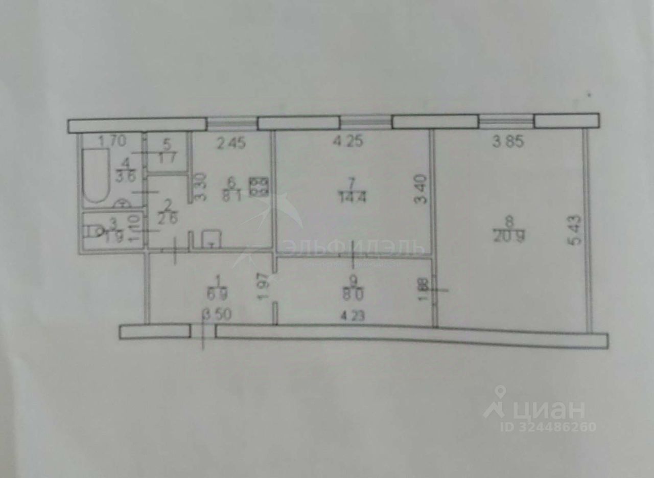Площадь квартиры 68,1 кв.м.
