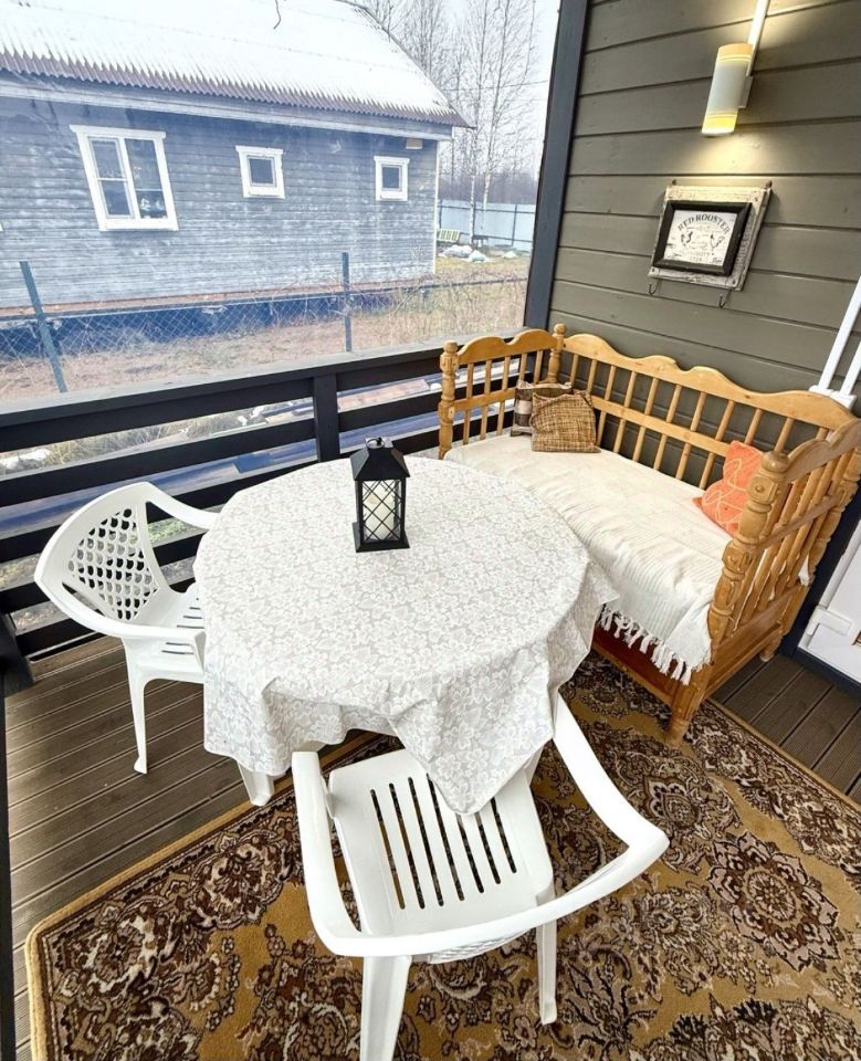 Абсолютно благоустроенный, светлый, приятно пахнущий свежим деревом дом с кухней-гостиной, двумя раздельными спальнями, совмещенным санузлом, технической комнатой и просторной крытой верандой, с которой открывается прекрасный панорамный вид на участок.