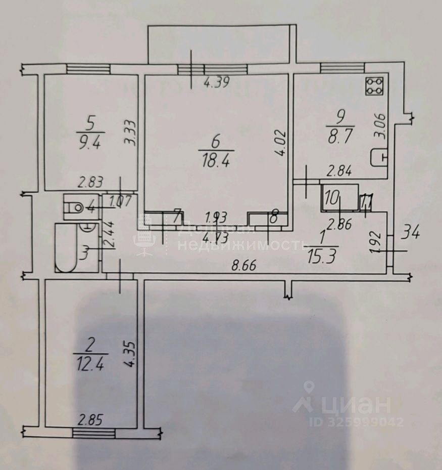 • - комнаты раздельные 39,23 м² - 9,4/18,4/12,4. • Лоджия застеклена с выходом из комнаты 4,7 кв.м • Санузел раздельный. В ванне - новый ремонт, кафель, замена труб. • Окна - стеклопакеты в квартире.