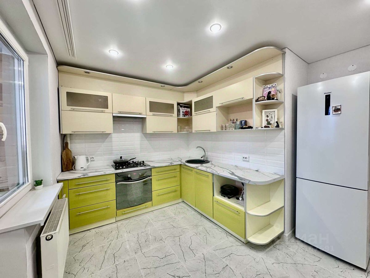 Просторная кухня 10,8 кв.м с балконом (3 кв.м) и полным комплектом встроенной техники, которая остается: варочная панель, духовой шкаф, вытяжка, посудомоечная машина. • Изолированные комнаты: большая 19,5 кв.м и уютная 14 кв.м с лоджией 5 кв.м.
