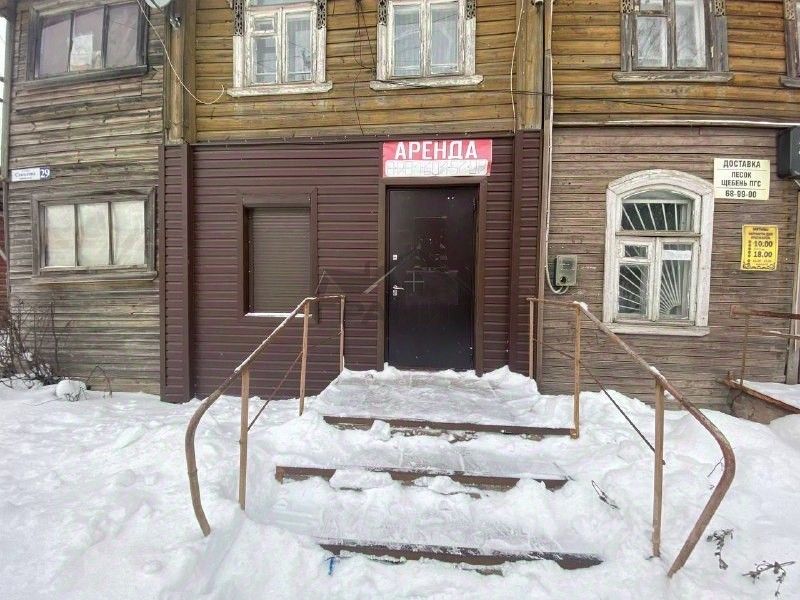 Характеристики помещения: • Площадь: 61,9 кв.м. • Первый этаж с отдельным входом. • Состояние: косметический ремонт, готово к эксплуатации. • Обновленная электропроводка (2019 г.). • Установлена система пожарной безопасности и видеонаблюдения. • Центральное отопление и водоснабжение. • Две комнаты и большое подсобное помещение. • Назначение: нежилое. • Две входные двери.