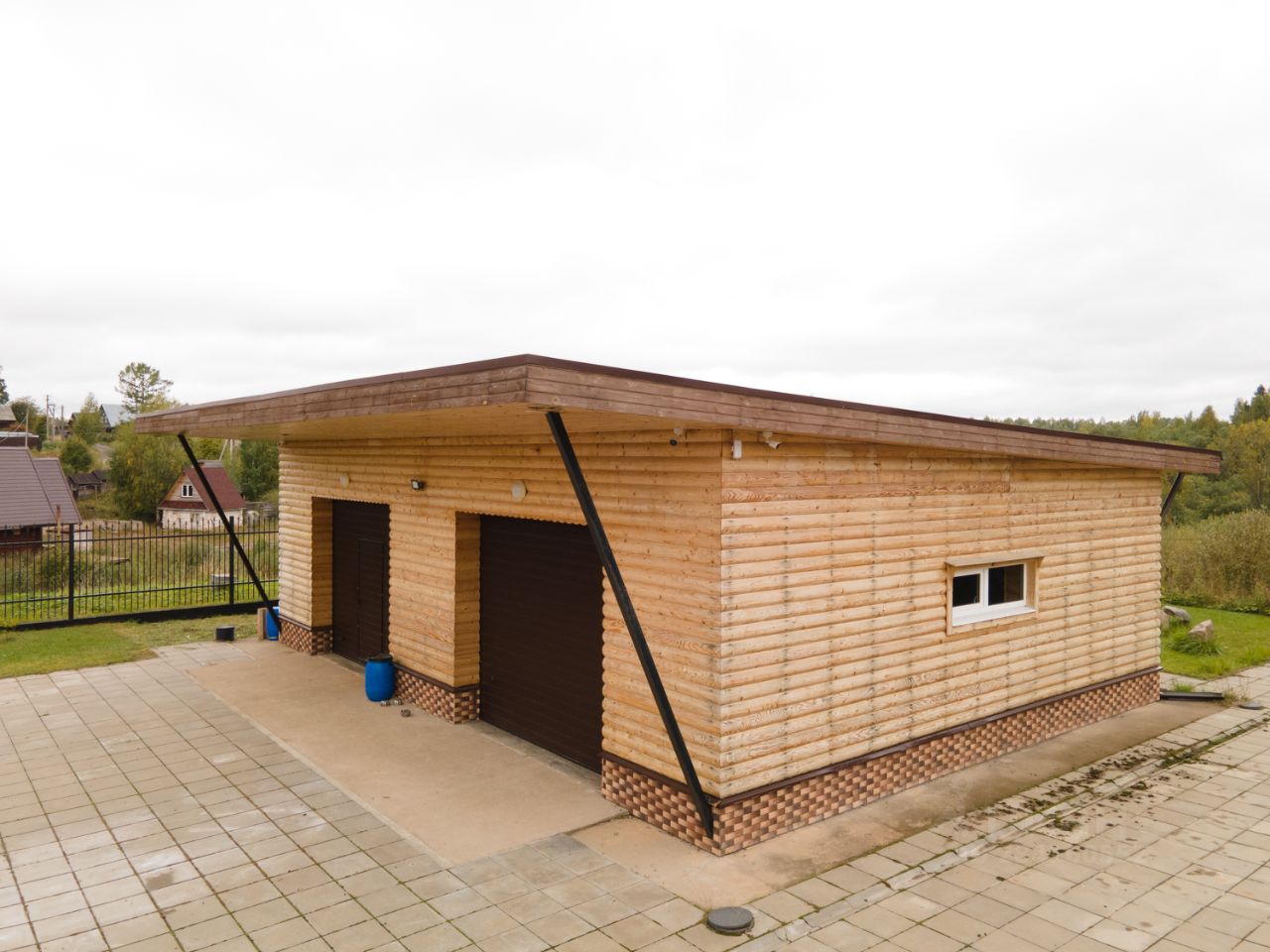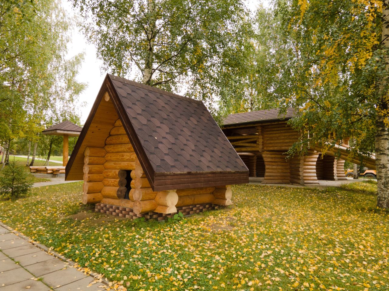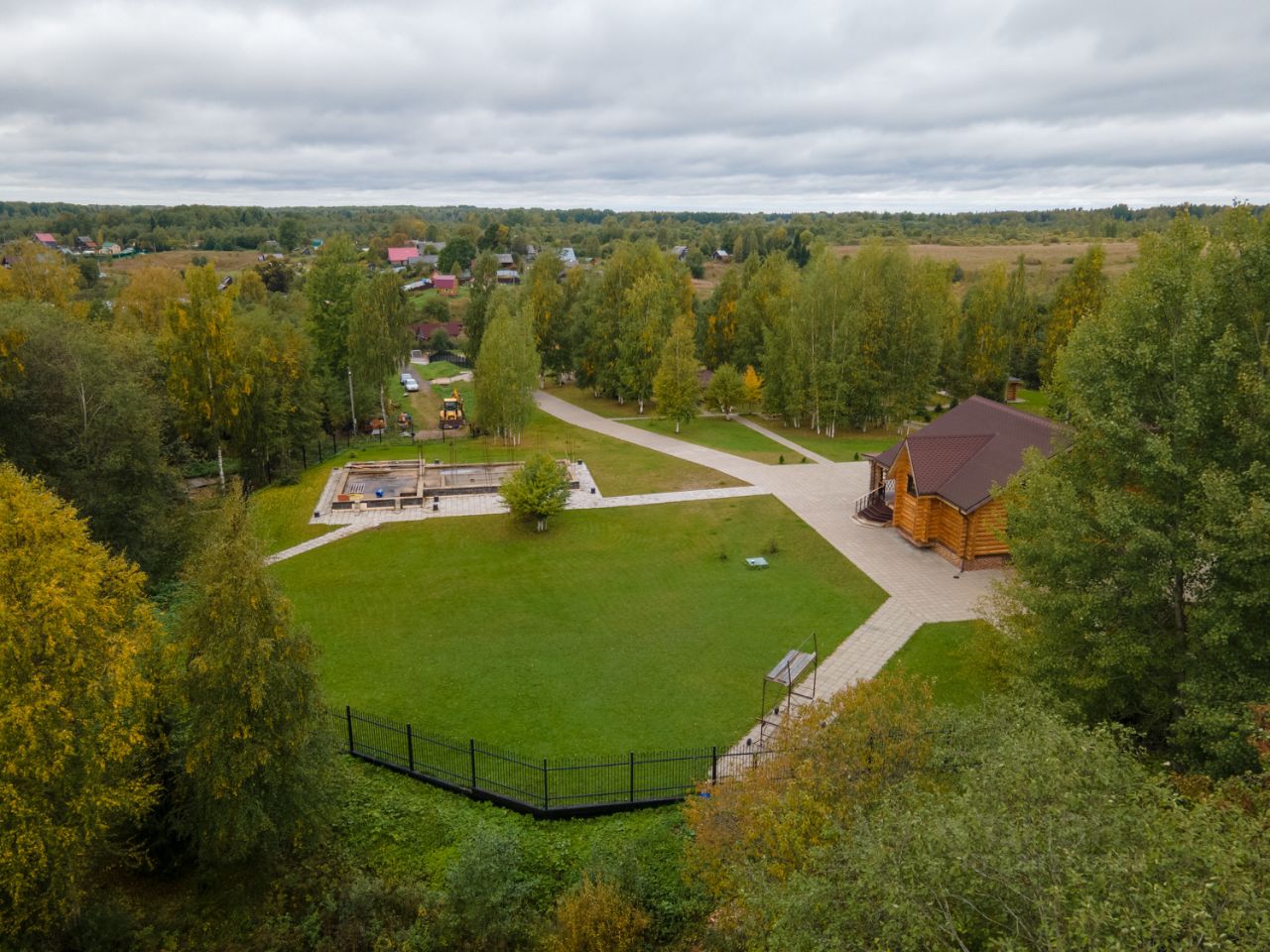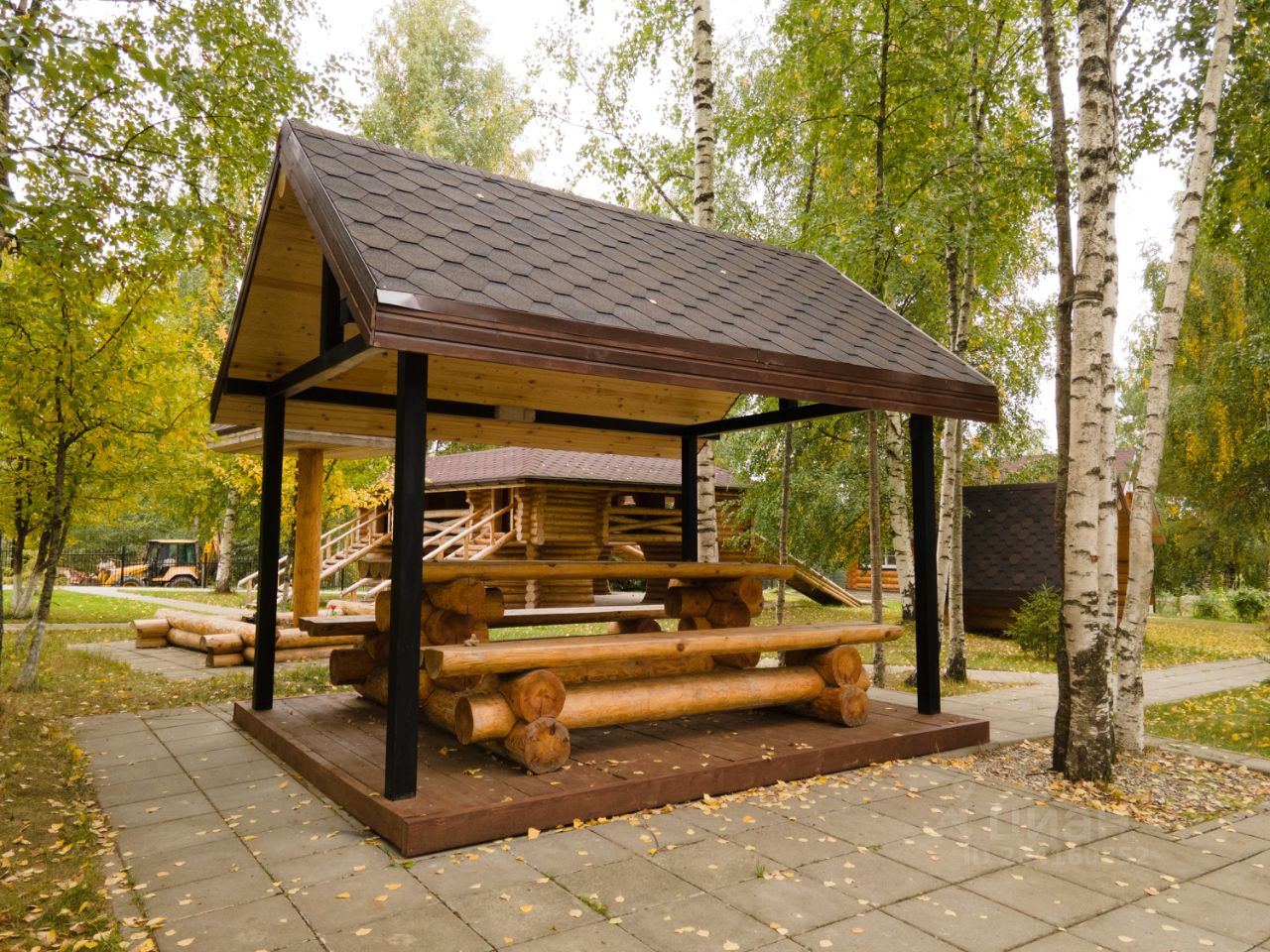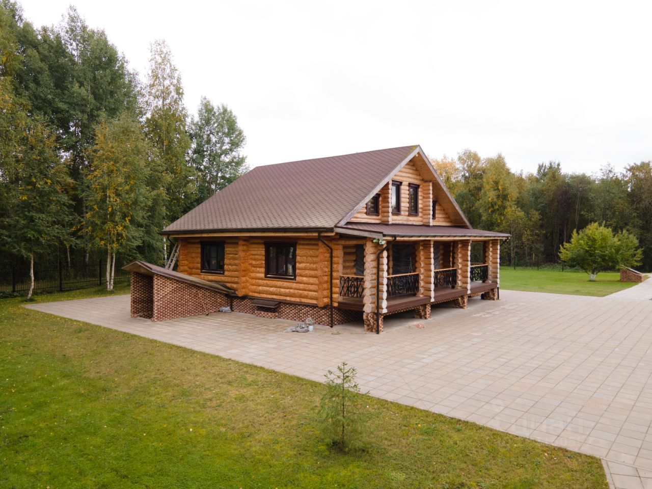 Все постройки выполнены из оцилиндрованного бревна (минимальный диаметр 26 см). Отопление автономное, электрический котёл, водяные радиаторы. Канализация септик. На территории 4 колодца (глубиной более 15 метров). Детская площадка рубленная из бревна. Более 2 тыс. кв. м. вымощено тротуарной плиткой. Газон, плодовый сад, березовая роща, хвойная растительность.